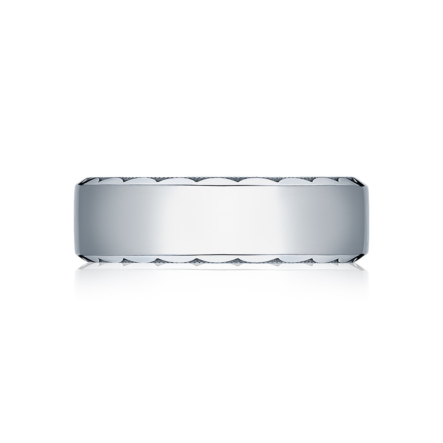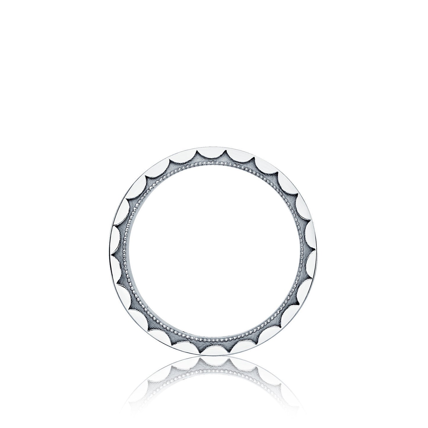 Discover a Passionate union of wedding bands; for him and her. Subtle milligrain detail and Tacori's signature Crescent Silhouettes decorate the exterior of this flat, satin-finish Gentleman's band.