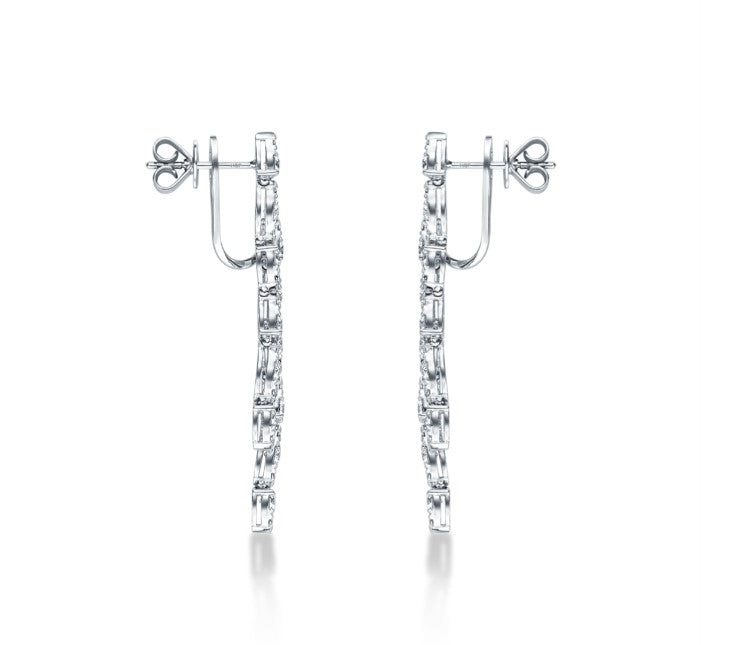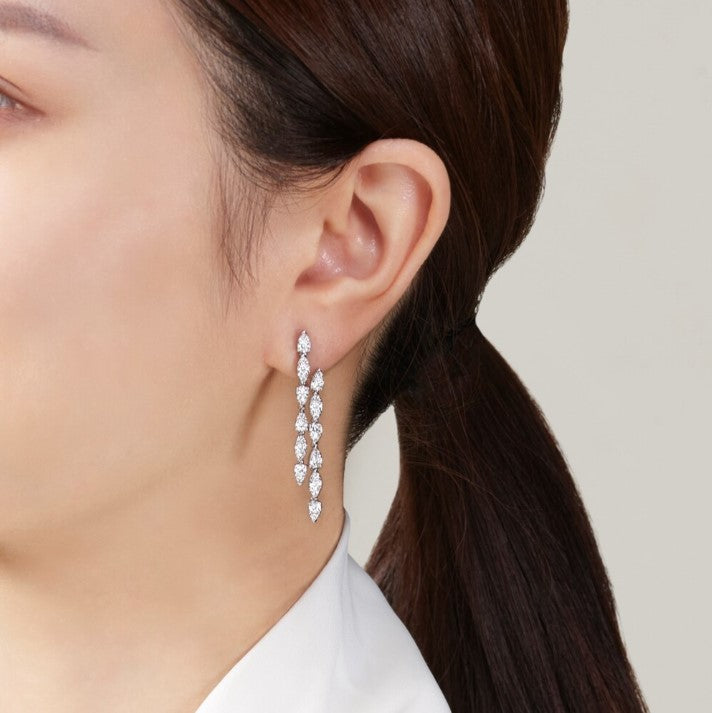 Aerial Double Dewdrop Stiletto Earrings are the perfect style to take you from day to night. So versatile, can be worn as two long, linear drops or as a singular stiletto for a more casual look. A seamless diamond look from end to end.