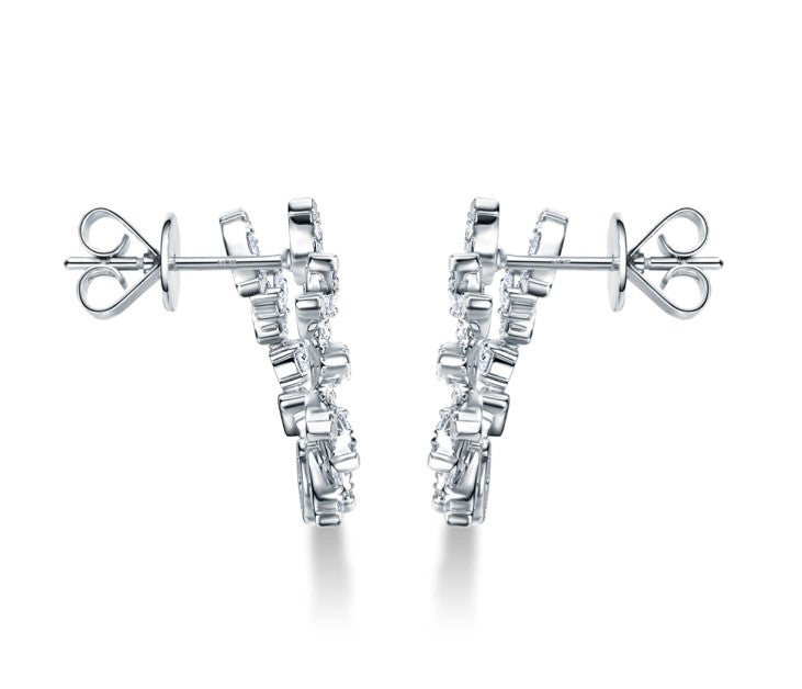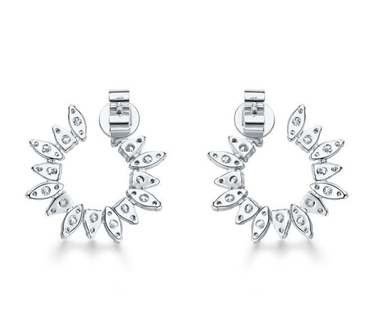 The sun, the ultimate source of light and brilliance, captures a vibrant sunburst motif. Our take on classic diamond hoops, these earrings sit at a unique flattering angle, wrapping the ear and framing the face with radiant sparkle.