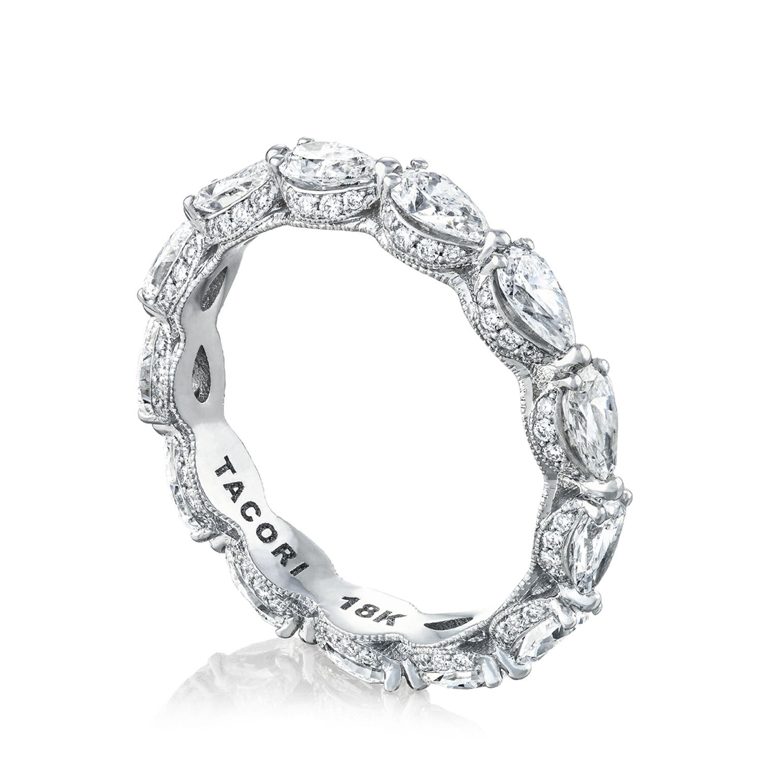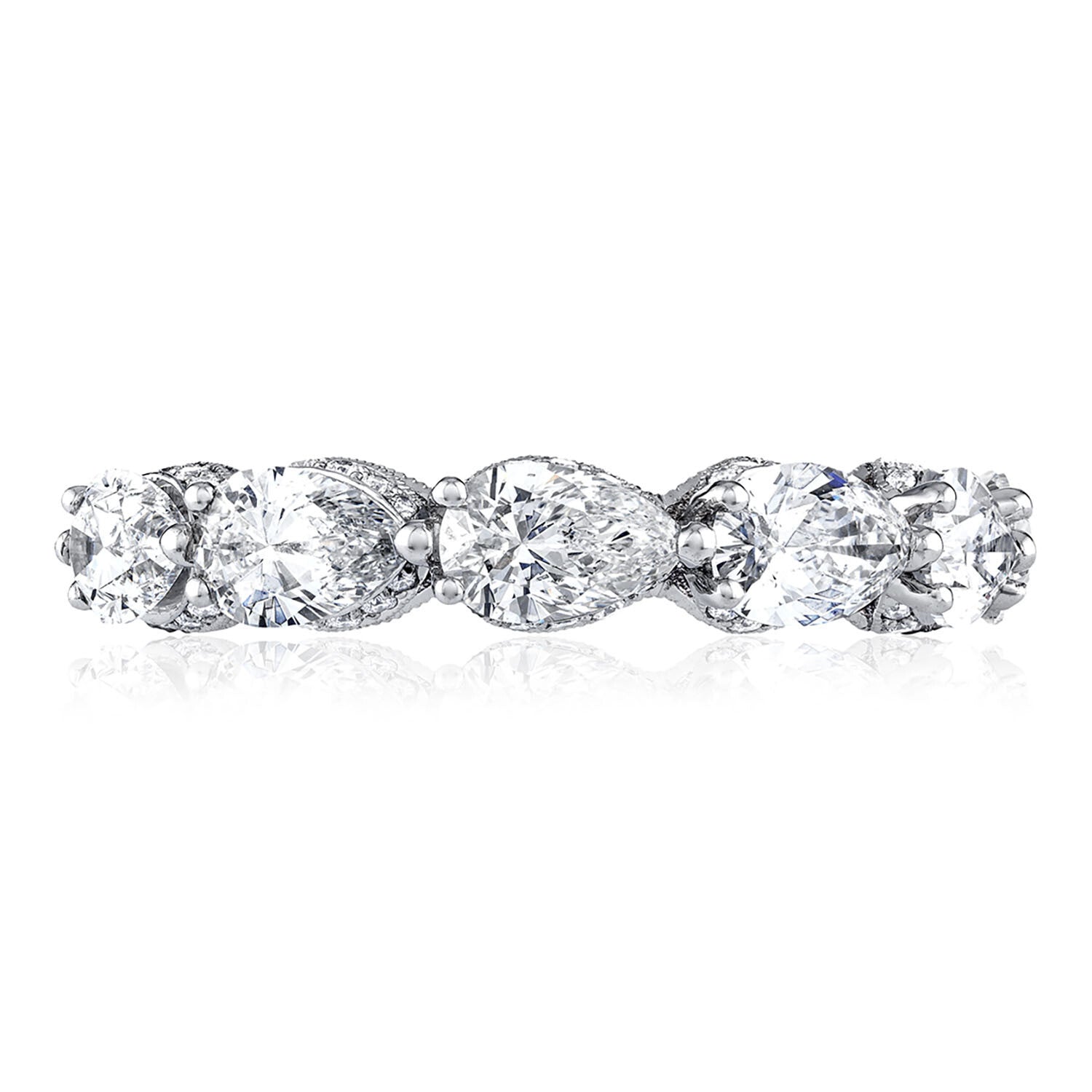 For the Tacori Girl yearning for a bold symbol of her love. Pear shaped diamonds dance along a band with pavé set diamonds along the inner face of the ring, allowing the brilliant diamonds to sparkle from every angle.