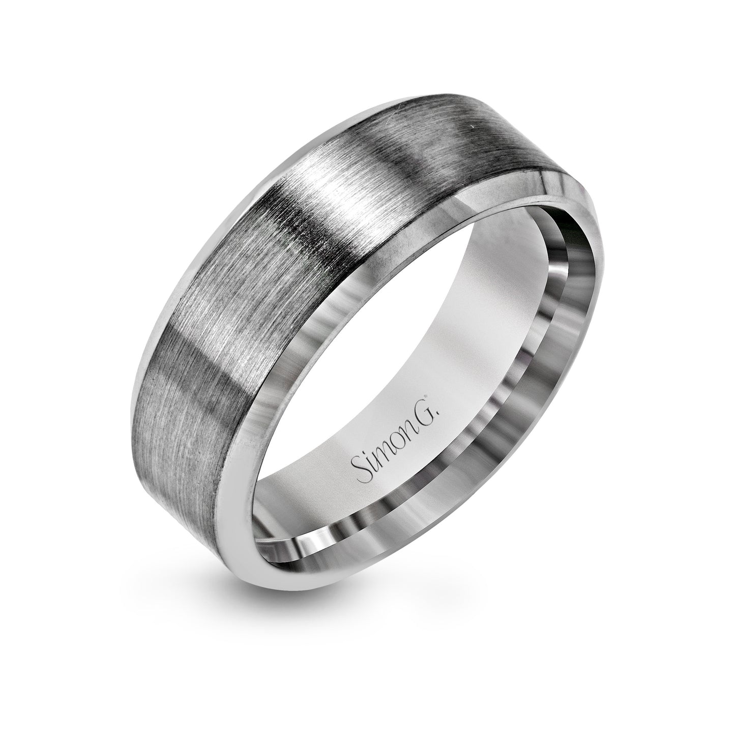 This modern men's band has a clean, classic design, a brushed metal finish and beveled edges.