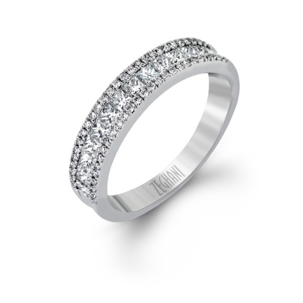 This lovely 14k white gold band is part of our Blindingly Beautiful collection and contains .16 ctw of sparkling white diamonds alongside .62 ctw of modern princess cut diamondsWant to see this Womens Wedding Ring in person?